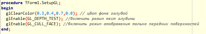 нужно изменить. Поэтому напишем еще маленькую дополнительную процедуру: SetupGL.